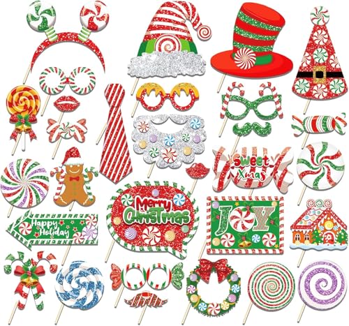 30pcs Weihnachtsfeier Foto Requisiten,Fotobox Accessoires Weihnachten,Party Zubehör Handgehaltene Dekorative Fotorequisiten,Weihnachten Photo Booth Requisiten Weihnachtsfeier Party Deko