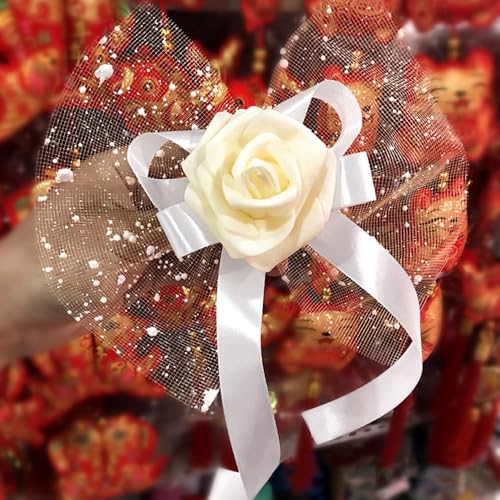 Der Rosettenbogen besteht aus hochwertigem Mesh, Polyester und PE. Langlebig und wiederverwendbar. Jede Schleife wird mit einem Saugnapf und einer Krawatte geliefert, sodass Sie die Schleife überall dort binden können, wo Sie sie dekorieren möchten. Rosenblütenschleifen eignen sich perfekt zum Dekorieren Ihrer Fahrzeugspiegel oder Türgriffe. Ideal für Hochzeitsautos oder andere Hochzeitsdekorationen, aber auch für Blumensträuße, Geschenkverpackungen, Bankdekorationen, Partydekorationen und Christbaumschmuck. Perfekt als Antennenschleifen für ein Brautauto Pkw bei einer Hochzeitsparade.