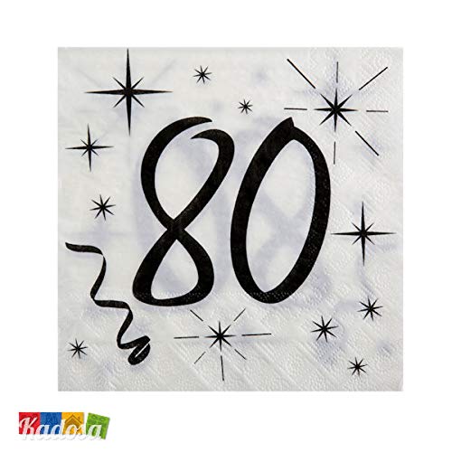 Farbe: Weiß und Schwarz. Epaisseur: 3 Plissés. Material: Papier. Lieferumfang: 1 Packung mit 20 Geburtstagsservietten. Größe: 16,5 cm x 16,5 cm (geschlossen) / 33 cm x 33 cm (offen)