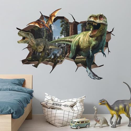 ANHUIB Dino Wandtattoo,Wandtattoo Dinosaurier 3D,Wandaufkleber Dino Groß,Wandtattoo Kinderzimmer Junge,3D Wanddurchbruch Wandaufkleber,Wandsticker für Jungen Schlafzimmer Babyzimmer Spielzimmer Deko
