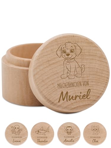Bärenfreunde - Milchzahndose personalisiert aus Holz mit hochwertiger Gravur - Zahndose Milchzähne als Erinnerung an die ersten Zähnchen (Hund)