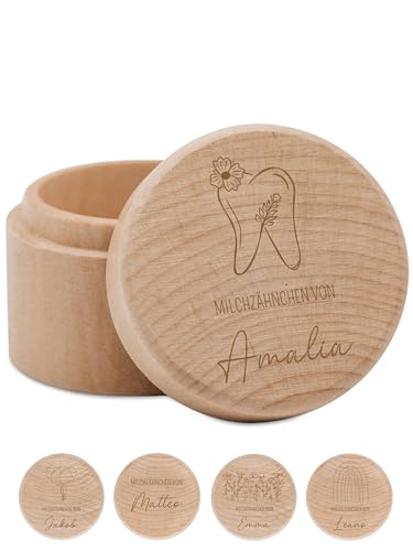 Bärenfreunde - Milchzahndose personalisiert aus Holz mit hochwertiger Gravur - Zahndose Milchzähne als Erinnerung an die ersten Zähnchen (Zahn Blumen)