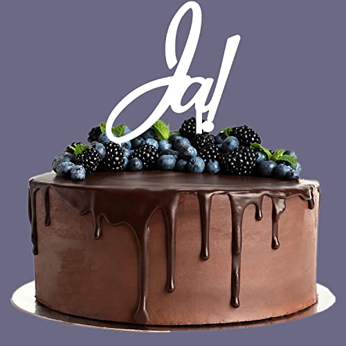 Cake Topper aus Acryl zur Hochzeit | Verlobung | Ja! | Kuchendeko Tortenstecker | weiß | Kuchendekoration und Tortenschmuck | Hochzeitsgeschenk |100% Made in Germany