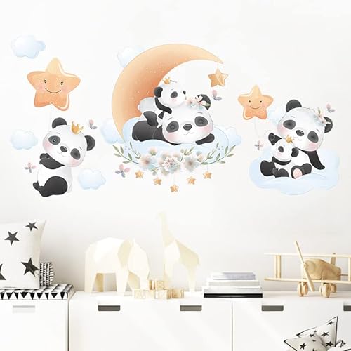 HGDESIGN® Wandtattoo Wandaufkleber Panda auf Wolke Kinderzimmer Babyzimmer Kinder Baby Jungen Mädchen Spielraum