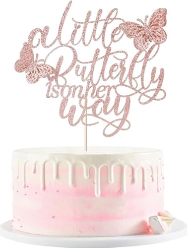 Schmetterlinge Tortendeko, Schmetterling Babyparty Kuchen deko Willkommen Baby Mädchen Cake Topper Roségold Schmetterlinge für Baby Shower Gender Reveal Party (Roségold)