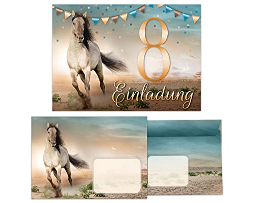 Junapack 12 Einladungskarten incl. 12 Umschläge zum 8. Kindergeburtstag achte Geburtstag Mädchen Pferd