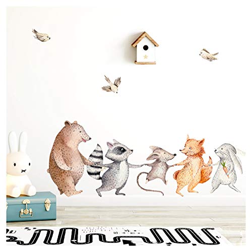 Little Deco Wandtattoo Wandsticker Kinderzimmer Waldtiere mit Ballon Wandsticker Baby Wanddeko Spielzimmer Wandaufkleber Schlafzimmer Wandbild Tapete DL638-7-M