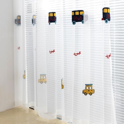 Lsimeru Transparent Vorhang Kinderzimmer Junge Ösen mit Auto Stickerei Muster 2 Stück Gardinen Kinder Dekoschal,140x160