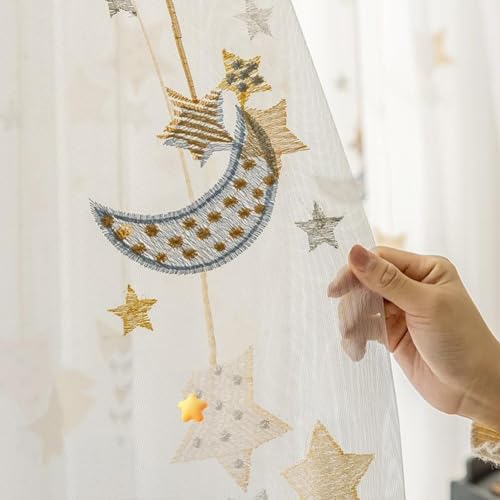 Lsimeru Weiß Vorhang Kinderzimmer Transparent Mädchen Jungen Sterne Mond Gardinen Durchsichtig Kinder Ösenschal für Mädchenzimmer Kinderzimmer Babyzimmer 150x270