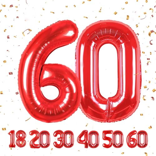 60 Geburtstag Deko zahlen luftballon 60 jahre | Folienballon Rot- für 60. Geburtstagsdeko Männer Frauen Ballon Zahl Deko zum Geburtstag fliegt mit Helium
