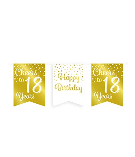 PD-Party 7023002 Luxus Party Flagge Banners | Geburtstag Feier | Partei Dekoration - 18, Gold/Weiß, 8.5cm Länge x 8.5cm Breite x 7.5cm Höhe