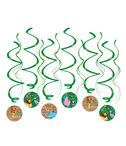 PD-Party - Deckenspiralen für Geburtstag 12 Stück - Thema Jungle & Tiere - Deko Geburtstag - Happy Birthday Dekoration - Jungle Deko - Party Deko - Geburtstag Junge & Mädchen - Geburtstags Deko