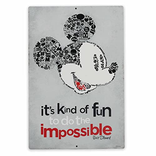 Disney Mickey Mouse Do the Impossible geprägtes Metallschild – Vintage-Micky-Maus-Wandkunst mit inspirierendem Walt Disney-Zitat