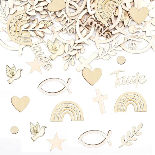 EnixwH 180 Stück Streudeko Taufe, Holz Taufe Deko, Taube Deko Taufe Mädchen Junge, Tischdeko Taufe Mädchen, Streudeko Kommunion für Firmung Konfirmation Babyparty Babyshowerparty Deko