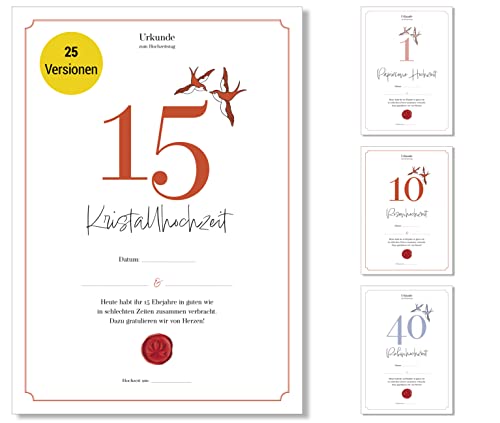 Frank Paperman® | 15 Hochzeitstag Geschenk | Ehejubiläum | Kristall Hochzeit Geschenk | Urkunde Hochzeitstag | klassisch | Geschenkideen Hochzeitstag | Vordruck im DIN-A4-Format