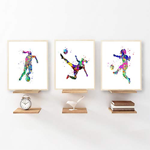 Fußball Wand Bilder Fußball Leinwand Gemälde Aquarell Mädchen Fußball Party Poster Kunstdrucke Wandbilder Mädchen Kinderzimmer Wohnkultur 40 x 60 cm x 3 ungerahmt
