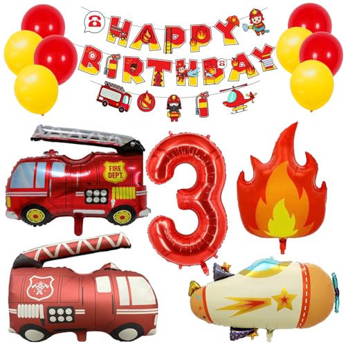 🎉Happy Birthday Girlande Kinder, Bedruckt mit einer Vielzahl von Feuerwehrmustern, die Buchstabenhöhe beträgt ca. 16,5 cm, aus 250g/m^2 weißem Karton white 🚚1 XXL Feuerwehrauto Folienballon und 1 XXL 3D Hubschrauber Folienballon, beides sehr beliebte Muster für kleine Jungs 🎈Höhe 40 Zoll/100cm, Rot Nummer 3 Folienballon 🎈12 Zoll/30cm, 6 rot +6 gelb+4 weiß Helium Ballon 🎉 Alle Ballons können mit Helium schweben, geeignet für die Geburtstagsfeier von 3 Jahre Kinder, Hersteller: Ohighing