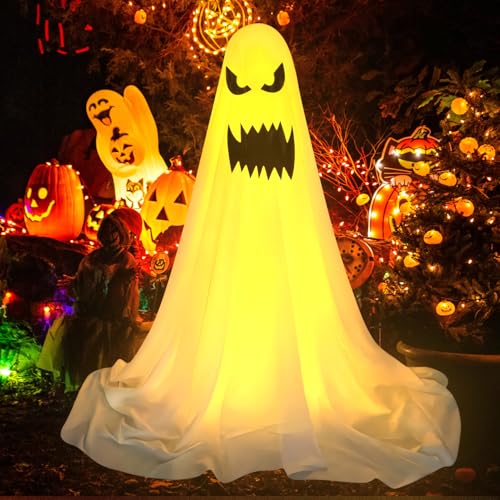 Halloween Deko Geist Leuchtend, Halloween Stehende Geister Deko mit Licht, Halloween Deko Leuchtend Geister Batteriebetrieben für Halloween Dekoration, Party Deko, Garten Deko (Groß)
