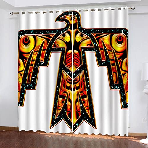 JIARAO 2 Stück Gardinen Donnervogel Vorhänge Verdunkelung Vorhang Blickdicht mit Ösen Wohnzimmer Gardinen Amerikanische Indianer Kinderzimmer Schlafzimmer Gardinen Kurz 234 x 137 BxH