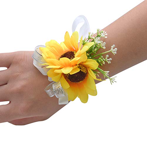JIHUOO 2 Stück Sonnenblumen Armband Blumenarmband Handgelenk Corsage Armreif Brautjungfer Blumenschmuck für Hochzeit