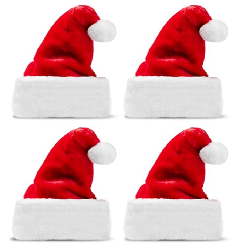 JOYIN 4 Stück Weihnachtsmützen, Rot Plüsch Nikolausmützen Weihnachtsmann Mütze Weihnacht Nikolaus für Erwachsene Kinder