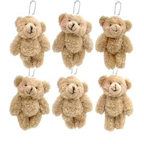 JZK 6 x weiche Plüsch winzige Bär Schlüsselanhänger für Rucksack Stofftier Schlüsselanhänger Mini Spielzeug für Party Gefälligkeiten für Kinder und Erwachsene, Geburtstagsfeier Giveaways Dankeschön