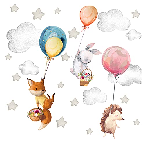 💚 LIEFERUMFANG - Ein Wandtattoo mit Fuchs Hase Igel mit Ballons, das Ansichtsbild entspricht 70 x 56 cm und der Fuchs mit Ballons hat eine Größe von 13 x 29 cm (Breite x Höhe) inkl. Anleitung zur kinderleichten Anbringung und einem Probeaufkleber. 💚 WANDDEKO - Moderne Kinderzimmer Wandaufkleber, so einzigartig wie Dein Kind, machen jede Wand zum Unikat. 💚 ABZIEHEN AUFKLEBEN - Selbstklebende Sticker haften auf allen glatten und fett-, latex- und silikonfreien Oberflächen, auch Raufaser, Möbel, Spiegel etc. 💚 PREMIUM QUALITÄT - MADE IN GERMANY - Konturgeschnittene Kinder Aufkleber sind B1 zertifiziert nach DIN4102 geeignet für Baby - und Kinderzimmer sowie Schulen und Kindergärten und sind chlor-, geruch- und weichmacherfrei. 💚 SUPER GESCHENKIDEE - Egal ob Mädchen oder Junge, zur Babyparty, Geburt oder Kindergeburtstag., Hersteller: Little Deco