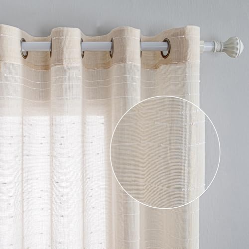 MYSKY HOME Gardine Vorhänge mit Ösen Gardinen Weiss Streifen Vorhang Wohnzimmer Schlafzimmer 2er Set Halbtransparent Voile Curtains for kinderzimmer, H 225 x B 140 cm, Beige.