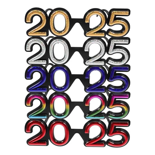 PRETYZOOM 5 Stück Silvester Brille 2025 Brillenrahmen Frohes Neues Jahr Glitzer-Brillen Für 2025 Silvester Party Zubehör Foto Requisiten 2025