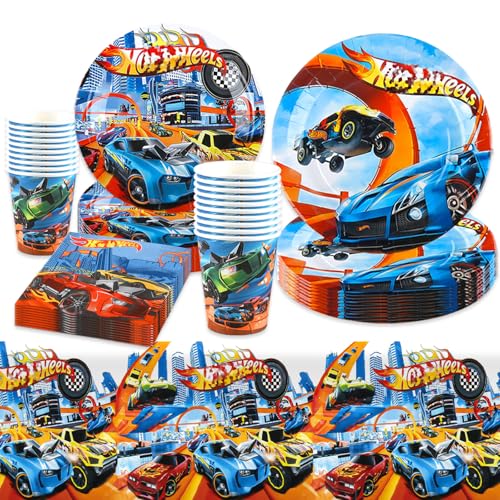 Chukua Pappteller Kindergeburtstag Deko Jungen Mädchen - Autos Geburtstag Geschirr Set Hot Geburtstagsdeko Wheels Partygeschirr Cars Party Supplies Deko Tischdecke Servietten Teller Tassen 10 Gäste