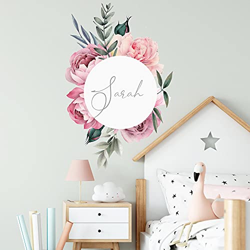 Rose im Kranz mit WUNSCHNAME V297 Wandtattoo personalisierbar Aufkleber Sticker Kinderzimmer Namensaufkleber Name Wunschnamen Türaufkleber (40 x 62 cm)