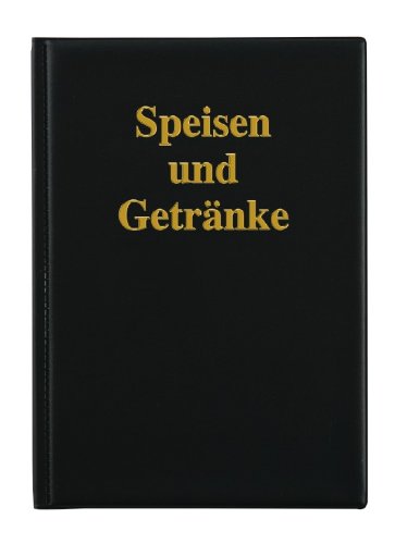 Speisekarten-Mappe / Menükarte mit Goldprägung im Format A5. Die Mappe besteht aus strapazierfähigem schwarzem Kunststoff und hat 2 Einsteckfächer. Inkl. 6 Sichthüllen für 12 Seiten enthalten (nicht erweiterbar).