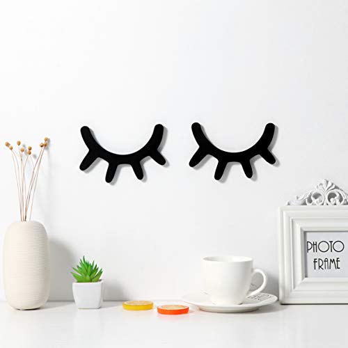 Vosarea 3D Wimpern Wandtattoo Holz Wimpern Wandaufkleber für Babyzimmer Kinderzimmer Deko Wanddekoration Wandtattoo Schlafende Augen Wand Aufkleber Wimpern Sleepy Eyes Wanddekoration (Schwarz)