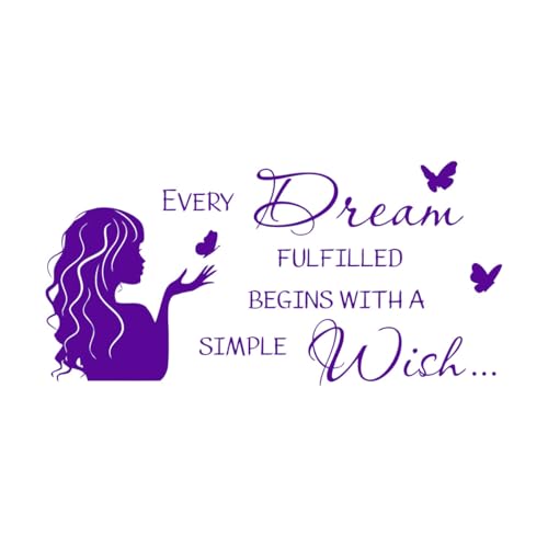 LZHOUTING Wandaufkleber mit Zitat "Jeder erfüllte Traum beginnt mit einem einfachen Wunsch" mit Traumschild, Wandaufkleber für Schlafzimmer, Kinderzimmer, Heimdekoration, Schwarz, 29 x 58 cm