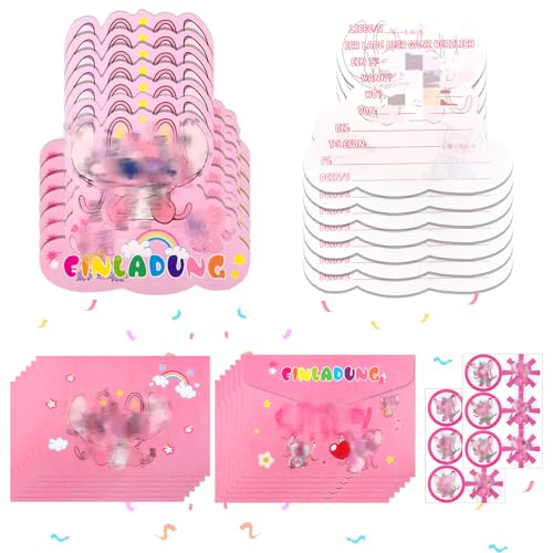 yumcute Einladungen,12 Einladungen Rosa Einladungskarten Kindergeburtstag Anime Party Einladung Partyeinladung Set Cartoon Themed von Jungen und Mädchen