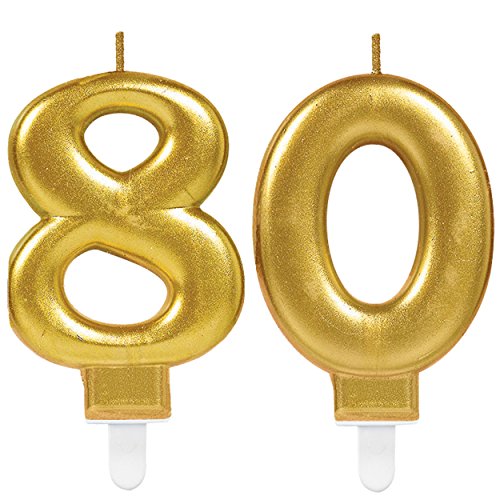 2x Zahlenkerzen * ZAHL 80 * in GOLD | 11cm x 9cm groß | 80. Deko Hochzeit Jubiläum Geburtstagskerze Kerze Geburtstag