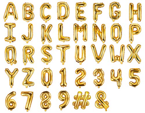 Folienballon Buchstaben Zahl 35cm Luftballon Geburtstag Hochzeit Babyparty Silvester Dekoration, Farbe: Gold, Größe: Buchstabe - T