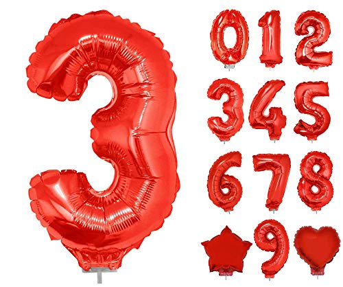 Zahlen Folienballon 41 cm mit Stab - Rot Zahl 3
