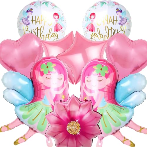 9 Stück Feen Deko Kindergeburtstag,Zauber Fee Themenballon, XXL süße Flügelfee Helium Ballon, Kinder Happy Birthday Fee Ballon, Luftballons für Mädchen Geburtstag Jubiläum Motto Party Dekoration