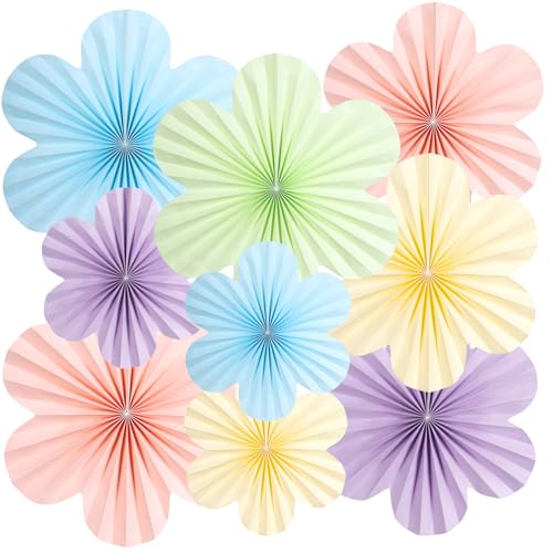 Easy Joy 9 Stück Papier Fächer Deko Rosa Papierblumen Party Regenbogen Deko Geburtstag Set für Hochzeit Geburtstag Tea Party Tischdeko Classroom Kirschblüten Backdrop Garland Hello Kitty Deko