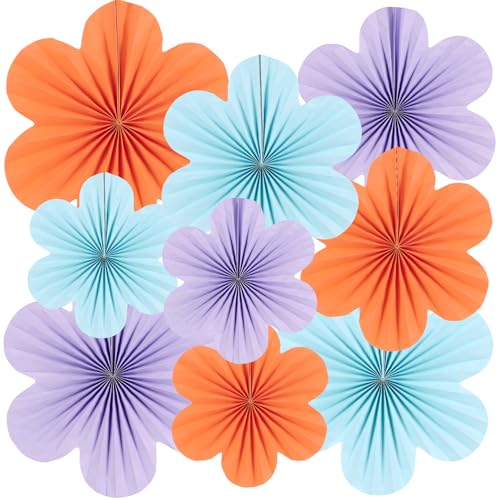 EASY JOY 9 Stück Papier Fächer Dekoration Orange Rosa Papierblumen Zum Aufhängen Party Deko Geburtstag Set für Hochzeit Geburtstag Tea Party Tischdeko Classroom Kirschblüten Backdrop Garland Deko