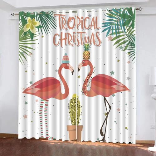 GIOVIA 3D Flamingo Vorhänge Abdunkelnde Tropisch Palmblätter Kindervorhänge Vorhang mit ösen 2er Set Gardinen Blickdicht Verdunkelungs für Kinderzimmer Schlafzimmer Wohnzimmer B 110 X H 95 cm