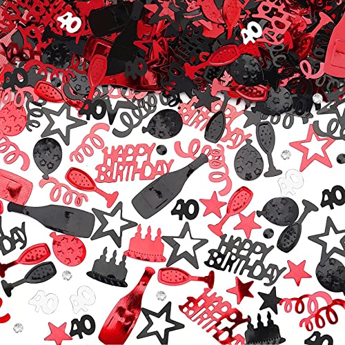 GoldRock Konfetti Tischdeko 40. Geburtstag für Männer und Frauen - Schwarz Rot Streudeko, Glitzer Confetti Geschenk