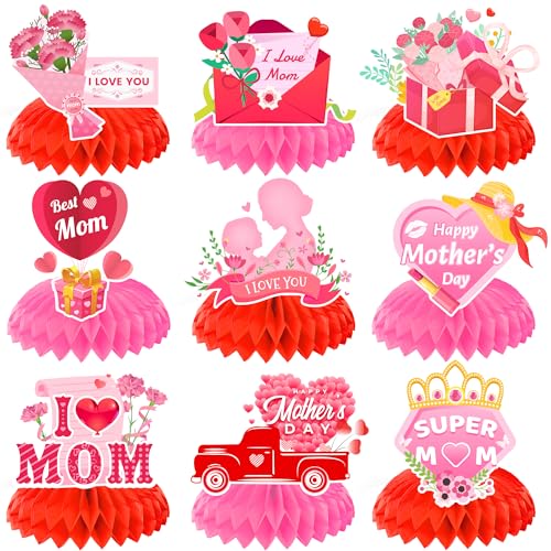 Huxolynifty Muttertag Partydekoration Honeycomb, 9 Pcs Muttertag Honeycomb Tafelaufsätze Dekoration für den Muttertag Tischdekorationen zum Muttertag for Partydekorationen zum Muttertag