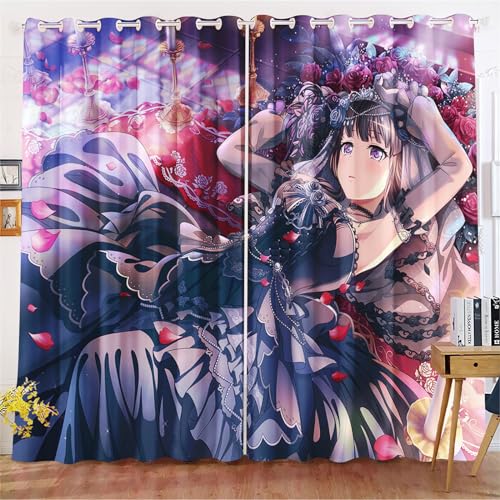 KIDSLOVE Anime Verdunkelungsvorhänge Anime Mädchen Blickdicht Vorhänge Cartoon Manga Japanisch Verdunkelungsvorhang Für Schlafzimmer Kinderzimmer (1,150x166cm(BxH)/ 75x166cmx2)