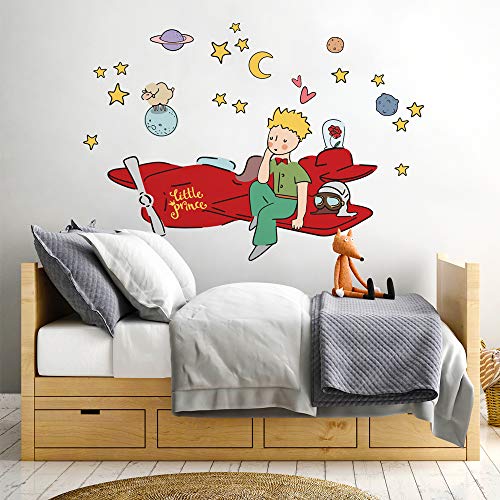 R00362 Wandaufkleber Kind Ökologisches Hypoallergenes Weicher Stoffeffekt Repositionierbar Fabel kleine Prinz Wanddekoration Neugeborene Kinderzimmer Selbstklebende Tapete