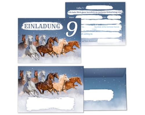 Minkocards 12 Einladungskarten incl. 12 Umschläge zum 9. Kindergeburtstag Mädchen Pferd Pferde Einladung neunte Geburtstag Kinder Einladungsset