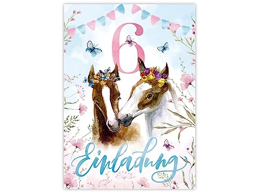 Minkocards 12 Einladungskarten zum 6. Kindergeburtstag Mädchen Pferd Einladung sechste Geburtstag Kinder bunte Geburtstagseinladungen