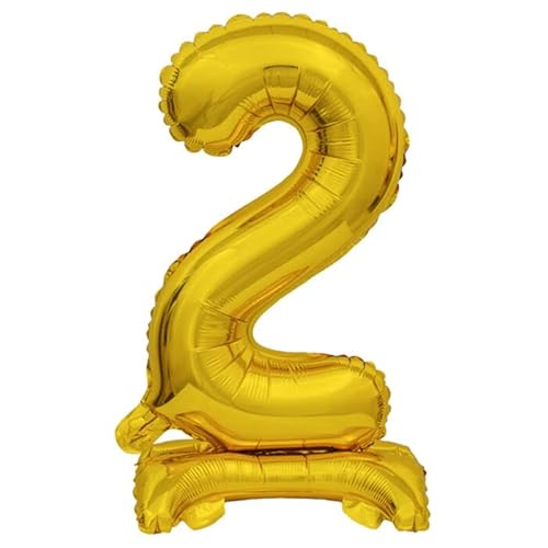 NEU Folienballon Geburtstagszahl Luft & Helium Mini Zahl 2 mit Standfuß Gold, ca. 38 cm