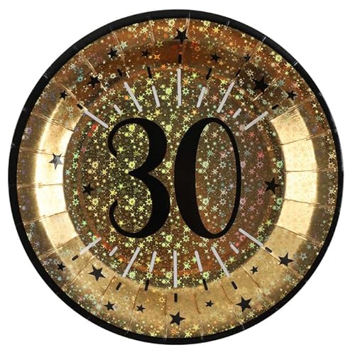 PAINT IT EASY NEU Papp-Teller Happy Birthday 30 gold-schwarz, 10 Stück, ca. 23cm
